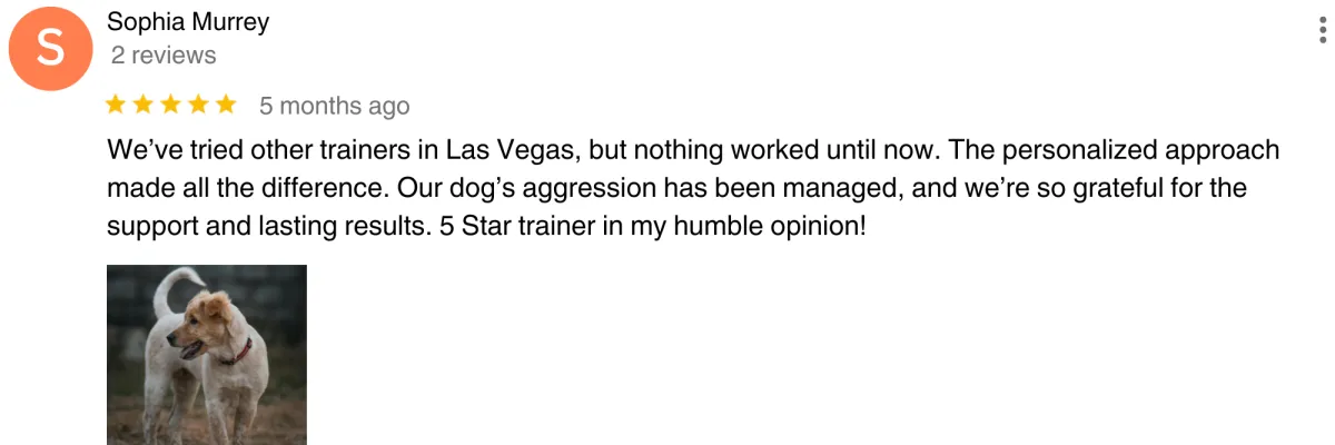 Transform your dog’s behavior with our fully customizable dog training programs, tailored to your unique needs and specific goals just like we've done for hundreds of Las Vegas other dog owners.
